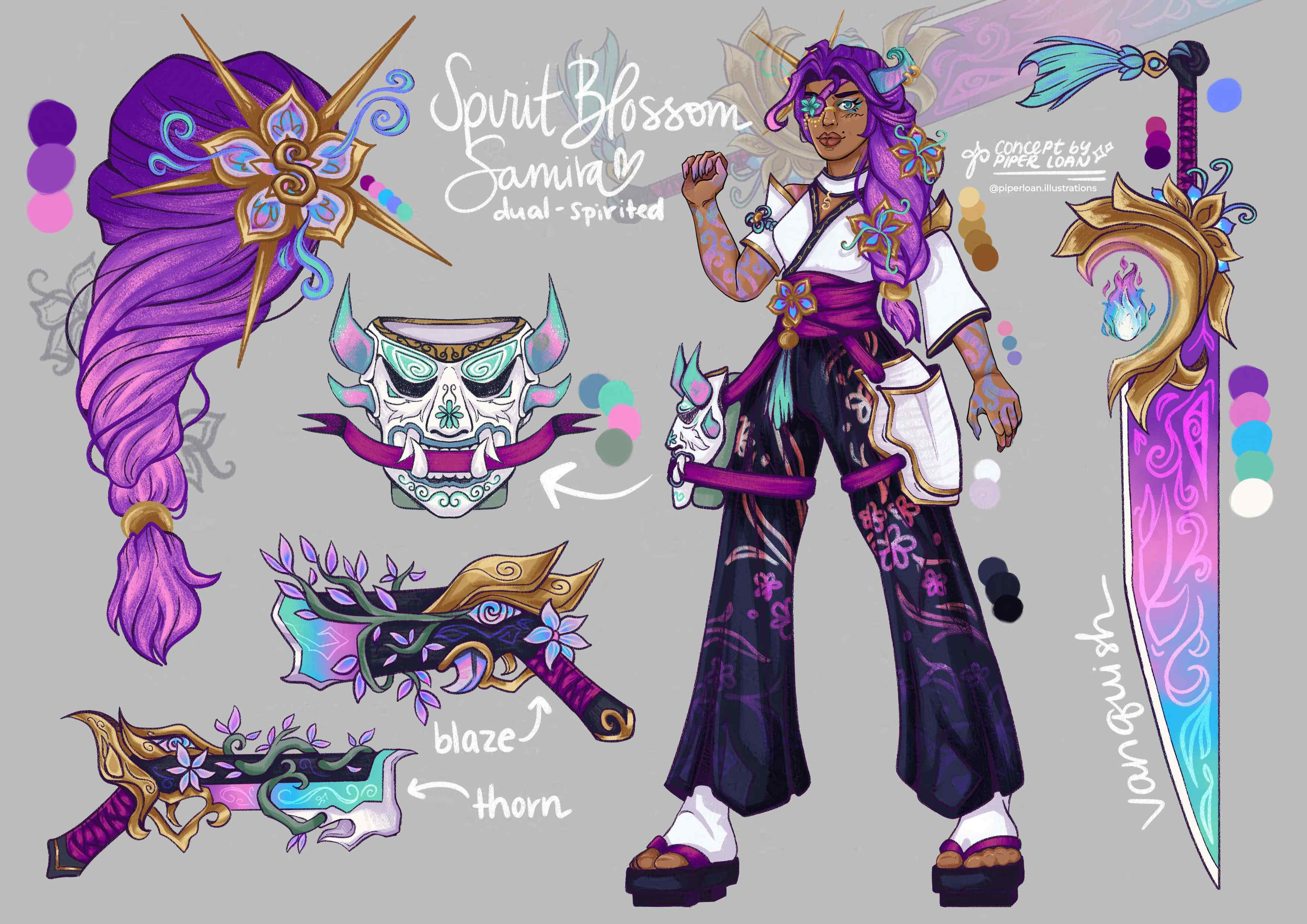 Between Realms: A Spirit Blossom Zine is a free-for-all, fanrun community event exploring Riot Games’ Spirit Blossom skinline and universe.The Zine’s goal is to “complete the skinline,” asking participants to help us create a skin concept for each Champion not yet included in the Spirit Blossom universe!This event is projected to run from July 1st, 2025 to January 12th, 2026.All project information is available in the Artist Guideline Document and Writer Guideline Document.This project is in no way affiliated with Riot Games.