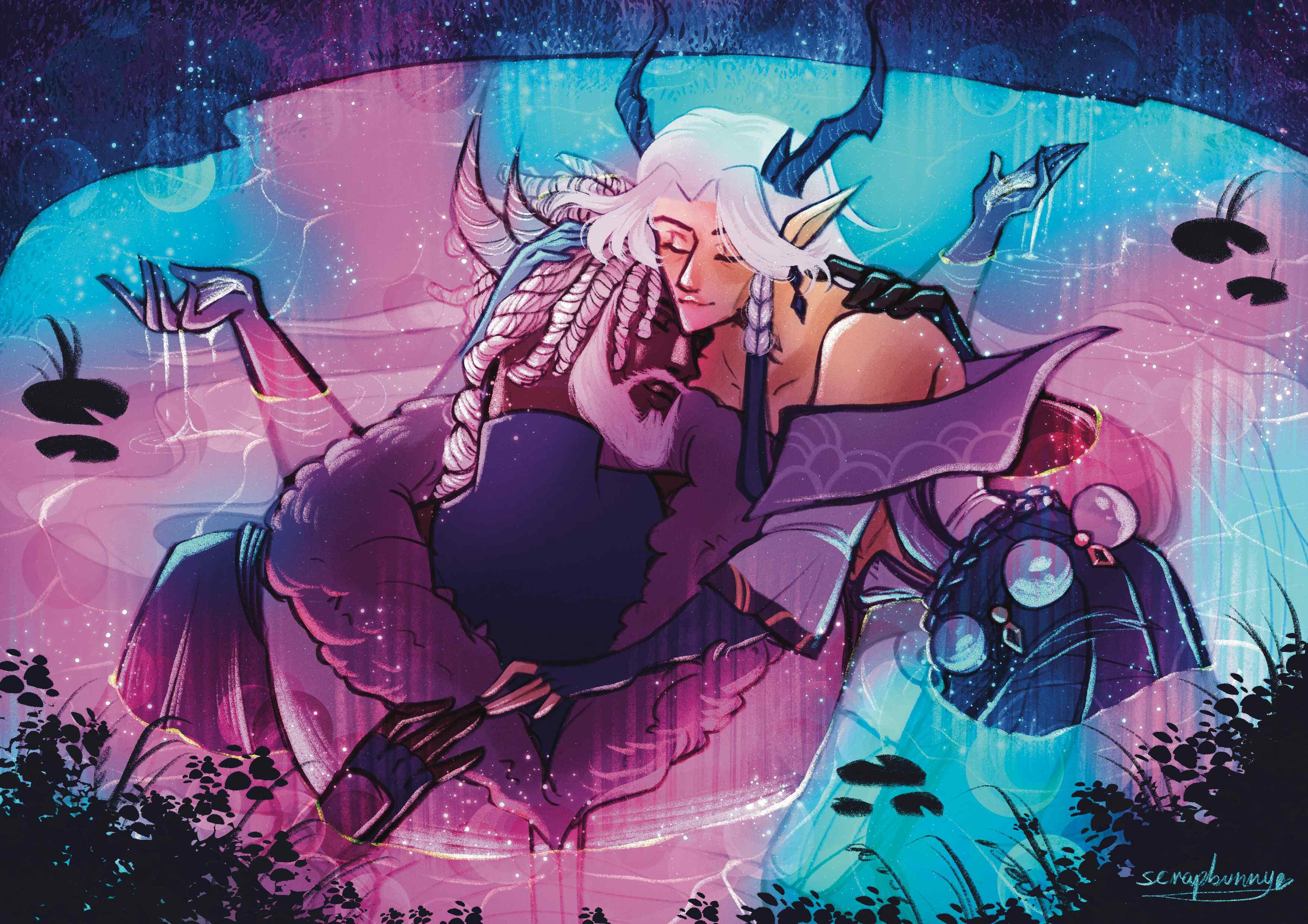 Milio was never calm enough to really admire it, but sometimes, on good days, he’d sit back and just relax. It was one of the unspoken perks that came with being a spirit, a kanmei in a world that constantly shifted and morphed to better adapt to the changing tides around it. The spirit world was no exception. Milio found that if you looked really closely, you could see how the moon and stars danced in a pink and purple sky, illuminated by a crystalized sun that never seemed to set. And then sometimes it didn’t look like a crystal at all! Sometimes the sky was just suns. Or it was just moons. And sometimes it looked like you were completely underwater!