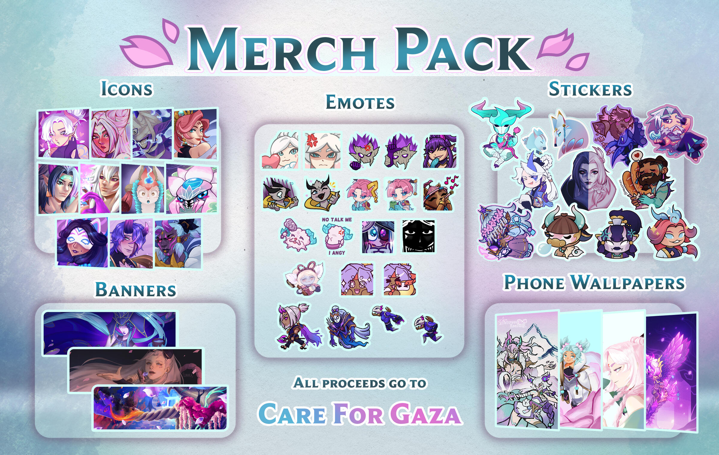 Our Merch Pack is now available to download for free below, but any donations for the cause, Care for Gaza, can be made directly here