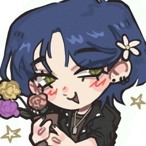 His fuemigos bumble over him, rolling in the pastel coloured grass. A few of them press against his arms while one is a bit more bold— it sits right on his chest, trilling happily.